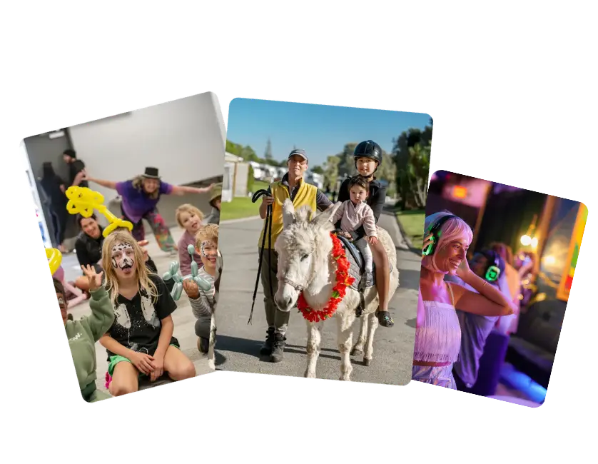 School holidays, sorted (with a little magic thrown in)BreadcrumbHome Holiday Guides What’s on these school holidays?In-park activities, holiday hot spots, and a few surprises worth planning for.1 Feb 2026 School holidays have a funny way of sneaking up. One minute you’re counting down to freedom, the next you’re googling “things to do with kids near me” at 7am.At Tasman Holiday Parks, we’ve learnt that the best school holiday memories don’t come from over-planning - they come from simple moments, a bit of surprise, and space for kids to just be kids.That’s where our Surprise & Delight moments come in.Painted faces, pedal kart races, and a whole park buzzing.Looking for something extra these school holidays?If you like to plan ahead (or simply want to know what’s happening while you’re there), the easiest way to stay in the loop is by visiting your individual park’s “What’s On” section on our website.Each park updates their activities every month, giving you the best possible opportunity to plan ahead - while still leaving plenty of room for spontaneity. From family-friendly favourites to one-off holiday surprises, it’s all there when you need it.Because school holidays should feel easy - with just enough magic sprinkled in.Hot spots: Easter school holiday funThis summer, a few of our parks are turning things up with in-park experiences designed especially for school holidays.Tasman Holiday Parks - Racecourse Beach📅11 April 2026 | ⏰ 3pmAn afternoon made for curious kids and brave little explorers. It all kicks off with our Reptile Show, where friendly experts bring along some incredible scaly guests - sharing fun facts, surprising stories, and plenty of “wow” moments along the way.Magic, music, and memories - the kind that only happen on holiday ✨Bubble machines on. Pool toys out. Shoes… absolutely optional at Racecourse Beach, NSW.Tasman Holiday Parks - Papamoa Beach📅 3 April 2026 | ⏰ 6pmAn evening made for glitter, giggles, and very enthusiastic dance moves. The Silent Disco is your chance to turn the holiday fun all the way up - with favourite songs, flashing lights, and plenty of space to bust a move.Warning: parents may be asked to join in.Papamoa Beach brings the wild and wonderful. School holidays don’t need to be packed to be memorable. Sometimes all it takes is the right place, a little room to roam, and a few moments of unexpected fun along the way.Wherever you’re staying, don’t forget to check your park’s What’s On for the latest activities - and keep an eye out for those extra surprises we love to roll out during the holidays.Looking to find your ideal school holiday spot?Plan ahead and explore our School Holidays guide to discover family-friendly parks and upcoming holiday inspiration.We’ll see you out there, soaking it all in ✨