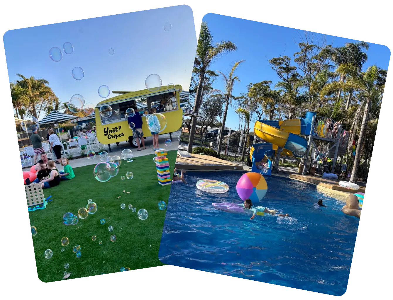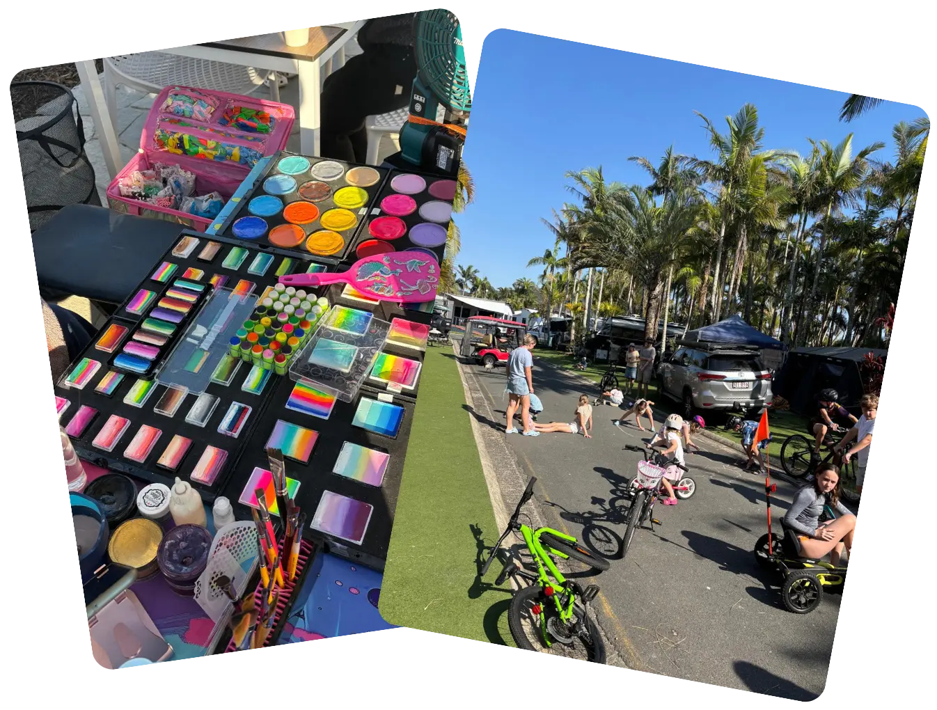 School holidays, sorted (with a little magic thrown in)BreadcrumbHome Holiday Guides What’s on these school holidays?In-park activities, holiday hot spots, and a few surprises worth planning for.30 Dec 2025 School holidays have a funny way of sneaking up. One minute you’re counting down to freedom, the next you’re googling “things to do with kids near me” at 7am.At Tasman Holiday Parks, we’ve learnt that the best school holiday memories don’t come from over-planning - they come from simple moments, a bit of surprise, and space for kids to just be kids.That’s where our Surprise & Delight moments come in.Painted faces, pedal kart races, and a whole park buzzing.Looking for something extra these school holidays?If you like to plan ahead (or simply want to know what’s happening while you’re there), the easiest way to stay in the loop is by visiting your individual park’s “What’s On” section on our website.Each park updates their activities every month, giving you the best possible opportunity to plan ahead - while still leaving plenty of room for spontaneity. From family-friendly favourites to one-off holiday surprises, it’s all there when you need it.Because school holidays should feel easy - with just enough magic sprinkled in.Hot spots: Summer school holiday funThis summer, a few of our parks are turning things up with in-park experiences designed especially for school holidays.Tasman Holiday Parks - Racecourse Beach📅 24 January 2026 | ⏰ 2pm–6pmAn afternoon made for letting loose and leaning into holiday mode. It all kicks off at 2pm with Magical Dan, bringing big tricks, big laughs and a magic show that’ll have the kids glued (and the adults quietly impressed).Once the magic wraps up, it’s time to turn up the music and hit the dance floor - show us your best moves, spin until you’re dizzy, and dance like it’s the last night of holidays. Somewhere in between, get wild with face painting, add a bit of sparkle, and fully commit to the look.Magic, music, and memories - the kind that only happen on holiday ✨Bubble machines on. Pool toys out. Shoes… absolutely optional at Racecourse Beach, NSW.Tasman Holiday Parks - Moama on the Murray📅 6 January 2026 | ⏰ 1pm–4pmThis one’s all about big energy and even bigger laughs. From the moment it kicks off, kids can jump straight into the action with inflatable fun that’s made for bouncing, racing, and burning off every last bit of school holiday excitement.Take on the Big Baller challenge, dive into a Jurassic Adventure, and expect a whole lot of friendly competition, squeals of laughter, and kids who sleep very well that night. Easy afternoons, happy chaos, and holiday fun done right.From pump tracks to splash pools, Moama has it all.Tasman Holiday Parks - Papamoa Beach📅 15 January 2026 | ⏰ 10am–1pmStep right up - the circus is coming to town. Spend the morning learning a few new tricks with a mini circus activity show, where kids can jump in, have a go, and try their hand at some circus skills alongside the performers.Between face painting, balloon twisting, and the smell of fresh popcorn popping away, the whole park turns into a colourful, high-energy playground. It’s playful, a little bit magical, and exactly the kind of school holiday morning that turns into a core memory.Papamoa Beach brings the wild and wonderful. School holidays don’t need to be packed to be memorable. Sometimes all it takes is the right place, a little room to roam, and a few moments of unexpected fun along the way.Wherever you’re staying, don’t forget to check your park’s What’s On for the latest activities - and keep an eye out for those extra surprises we love to roll out during the holidays.Looking to find your ideal school holiday spot?Plan ahead and explore our School Holidays guide to discover family-friendly parks and upcoming holiday inspiration.We’ll see you out there, soaking it all in ✨