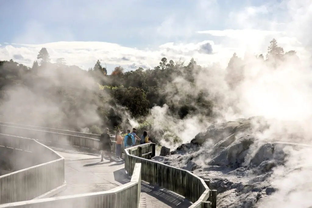 Top things to do in New Zealand: North IslandBreadcrumbHome Holiday Guides Top things to do in New Zealand: North IslandEmbark on an unforgettable winter road trip through New Zealand's North Island, where breathtaking landscapes, vibrant cities, and unique experiences await at every turn.7 June 2023 Welcome to the North Island of New Zealand, a captivating destination brimming with unforgettable experiences. In this blog post, we will guide you through the top things to do in New Zealand’s North Island.Starting in the bustling metropolis of Auckland and journeying through the stunning Bay of Plenty, cultural Rotorua, majestic Taupo, and lively Hamilton, this road trip will immerse you in the beauty and charm of the North Island.Discover the top attractions and must-see destinations in each location, ensuring a winter adventure you won’t soon forget.AucklandBegin your North Island road trip in Auckland, the vibrant gateway to New Zealand. Despite the cooler temperatures, Auckland offers a multitude of winter activities. Explore the city’s diverse neighbourhoods, visit the iconic Sky Tower, and indulge in a culinary journey at the bustling Viaduct Harbour.Don’t miss the opportunity to hop on the ferry across to Waiheke Island and sample exquisite wines at local vineyards. Capture breathtaking views of the city skyline from atop Mount Eden, and embrace Auckland’s cosmopolitan atmosphere.Bay of PlentyVenture east to the Bay of Plenty region, where pristine beaches and coastal charm await. In Waihi, discover the fascinating history of gold mining with a visit to the Gold Discovery Centre. Take advantage of the nature-immersed walking and bike tracks that offer magnificent views of this stunning area.Drive for 1 hour along the coastline until you reach the relaxed town of Papamoa. Indulge in a leisurely stroll along the stunning white sands of Papamoa Beach, and soak up the warm winter sun’s rays. Check out the local restaurants in the area and satisfy your inner foodie before continuing along the coastline to Ohiwa.Truly a destination designed to allow you to unwind. This tranquil escape provides some of New Zealand’s best native bush walks, beaches and wildlife. Explore the Ohiwa Harbour by kayak or paddleboard (available to hire at Tasman Holiday Parks – Ohiwa Beach), enjoy fishing for dinner right from the shoreline, or simply rewind and rejuvenate as you take in your surroundings.RotoruaContinuing your journey south, you’ll reach the geothermal wonderland of Rotorua. Despite the chilly weather, Rotorua’s thermal attractions are a must-see. Immerse yourself in Maori culture at Te Puia, where you can witness the famous Pohutu Geyser and experience a traditional Hangi feast.Soak in the natural geothermal hot pools at Hell’s Gate Geothermal Reserve and Mud Spa, offering a blissful retreat amidst the winter chill. Don’t forget to explore the Redwoods Forest, where you can enjoy invigorating hikes or even try your hand at mountain biking through the towering trees.TaupoNext on your itinerary is the captivating town of Taupo, nestled on the shores of Lake Taupo. Winter in Taupo offers a range of thrilling outdoor activities. Experience the exhilaration of skydiving over the stunning lake, or embark on a scenic cruise to the mesmerizing Maori Rock Carvings.For a truly unique adventure, take a helicopter ride and witness the snow-capped mountains surrounding Lake Taupo. Unwind in the healing waters of the Otumuheke Stream or enjoy a relaxing soak in natural hot pools at the Taupo DeBretts Spa Resort.HamiltonAs you head back towards Auckland, make a stop in Hamilton, known for its beautiful gardens and vibrant arts scene. Explore the enchanting Hamilton Gardens, featuring stunning themed gardens from around the world.Discover the history of New Zealand’s aviation at the Classic Flyers Museum, or take a leisurely walk along the peaceful riverside paths. Don’t miss a visit to the Hamilton Zoo, where you can encounter fascinating wildlife from around the globe.From the bustling cityscape of Auckland to the geothermal wonders of Rotorua, the stunning natural landscapes of Taupo, and the charming allure of Hamilton, each destination offers unique attractions and activities that cater to every traveller’s interests.New Zealand’s North Island is a year-round destination, and winter offers a unique charm that shouldn’t be missed. Be sure to pack warm clothing, comfortable footwear, and a spirit of adventure as you embark on this unforgettable road trip.So, hit the road and create cherished memories with friends and family as you discover the magic that awaits at every destination.Find comfortable, clean and convenient accommodation in each location that suits every traveller’s budget here.