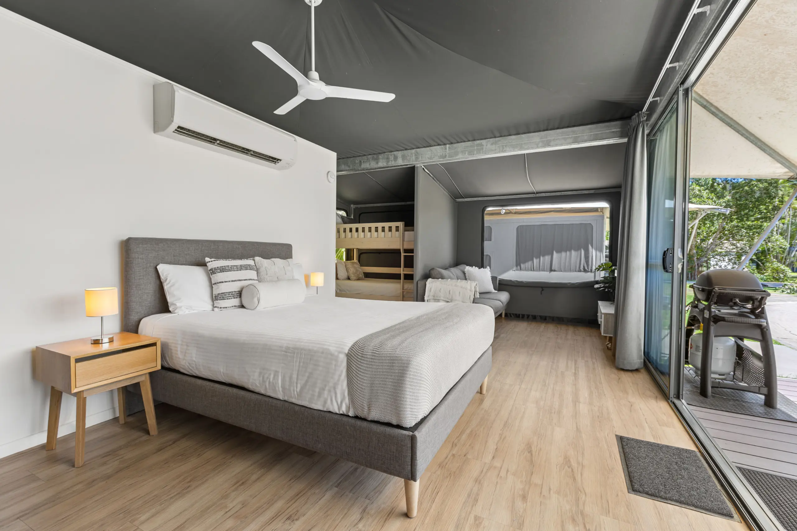 Airlie Beach: the ultimate glamping experienceBreadcrumbHome News & Development Airlie Beach: the ultimate glamping experienceTasman Holiday Parks - Airlie Beach is excited to unveil our luxurious glamping tents, providing guests with a perfect fusion of comfort and adventure set against the stunning backdrop of the Whitsundays.5 Sept 2025 Tasman Holiday Parks – Airlie Beach is thrilled to introduce our luxurious glamping tents, offering a unique blend of comfort and adventure in the heart of the Whitsundays. Located in a quiet corner of the park, these glamping tents provide an extraordinary holiday experience, perfect for both families looking for a unique experience and couples seeking a romantic getaway.Luxury in natureOur glamping tents are designed to offer a luxurious stay with all the amenities you need. Each glamping tent features an open-plan layout with a queen bed and two sets of single bunk beds, comfortably accommodating up to six people. The tents also include a fully equipped kitchen, dining, and lounge area, ensuring you have everything you need for a relaxing stay. Step outside to your private deck, where you can unwind or cook up a storm on the Weber BBQ while enjoying the tropical surroundings.Glamping Tent Kitchen | Tasman Holiday Parks - Airlie BeachPerfect for families and couplesThese glamping tents are perfect for families seeking a unique and memorable holiday. With enough space to comfortably sleep six, families can enjoy the great outdoors without sacrificing the comforts of home. Kids will love the adventure of staying in a tent, while parents can relax knowing they have all the modern amenities they need.For couples, the glamping tents provide a romantic escape. The queen bed offers a cosy retreat, and the private deck is perfect for enjoying a quiet evening together under the stars. The serene surroundings and luxurious accommodation make these glamping tents ideal for a romantic getaway.Glamping Tent | Tasman Holiday Parks - Airlie BeachUnparalleled amenities and facilitiesStaying in our glamping tent means you also have access to a range of high-quality amenities and facilities. Enjoy our resort-style swimming pool, perfect for cooling off after a day of exploring. The park also offers pedal karts, bike riding, and a daily bird feeding experience. For those who enjoy staying connected, high-speed WiFi is available throughout the park.Additional amenities include a modern camp kitchen, amenities blocks, laundry facilities, a play precinct, and BBQ areas for social gatherings. The park also features a kiosk that sells holiday essentials and our friendly reception team can also assist with tour bookings.Resort-Style Swimming Pool | Tasman Holiday Parks - Airlie BeachEndorsed by the expertsYou need a great base to explore The Whitsundays from, but you also don’t want to break the budget. We get it. Enter: Tasman Holiday Parks – Airlie Beach. As highlighted in a recent feature article by Urban List, this park is much more than your average caravan park. Not only are you surrounded by tropical rainforest, but you can also choose from a variety of accommodation options, including luxury glamping tents, tropical villas, premium standalone cabins, motel rooms, camping sites, and premium evergreen ensuite sites. The top pick, according to Urban List? The open-plan glamping tents that sleep up to six people and have all the little luxuries you could want, from the Weber BBQ to air conditioning and a spacious deck.Glamping Tent Front Deck | Tasman Holiday Parks - Airlie BeachBook your stay todayExperience the ultimate glamping adventure at Tasman Holiday Parks – Airlie Beach. Our glamping tents are now available for booking, offering a unique and luxurious camping experience. Visit our website to learn more and book your stay today. Don’t miss out on creating unforgettable memories in one of Australia’s most beautiful destinations.Whether you’re seeking Airlie Beach accommodation or a luxurious stay at an Airlie Beach caravan park, Tasman Holiday Parks has everything you need for the perfect holiday.