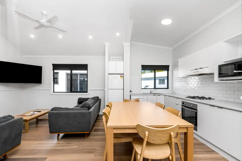 Villa Upgrades at North StarBreadcrumbHome News & Development Villa Upgrades at North StarWe’re upgrading several of our accommodation offerings to make your North Star stays more comfortable, more stylish, and even more memorable.4 Sept 2025 If you’ve stayed at Tasman Holiday Parks – North Star before, you already know it’s a destination like no other — a family-friendly, five-star coastal haven nestled between the sparkling waters of the Pacific Ocean and the tranquil banks of Cudgera Creek in the Tweed Coast. But even the best can get better, and we’re thrilled to share that some exciting changes are underway!We’re currently in the process of refurbishing and upgrading several of our beloved accommodation offerings to make your future North Star stays more comfortable, more stylish, and even more memorable.Aerial image of Tasman Holiday Parks North Star, Hastings PointSay hello to newly refreshed Grande Villas and Palm VillasAs part of our ongoing commitment to creating exceptional guest experiences, we’ve begun a full renovation and reimagining of our Grande Villas and Palm Villas — two of our most popular self-contained accommodation types.These spacious retreats have long been a favourite for families and couples seeking the perfect blend of comfort and convenience. Now, we’re taking things up a notch.What’s changing?The upgrades are comprehensive, with top-to-bottom enhancements designed to bring a fresh sense of modern coastal style while retaining the relaxed, welcoming feel North Star is known for.Here’s what you can expect:Brand new kitchens, complete with modern appliances and thoughtful layouts designed for longer stays and easy holiday meal prepStylish new furniture that blends comfort with contemporary design — think plush lounges, chic dining settings, and coastal-inspired decorModern bathrooms featuring sleek fixtures, ample space, and calming finishes for a spa-like feelEnhanced living and sleeping areas that maximise space, light, and functionality — perfect for families, groups or couplesDesigned with you in mindWhether you’re booking a midweek escape, a long-weekend getaway or an extended summer break, the new-look Grande Villas and Palm Villas will give you more room to relax, unwind, and reconnect.The upgrades reflect not only evolving design trends but also feedback from guests who love North Star for its quality, family-focused atmosphere and beautiful location. We’ve listened — and responded — with modern features, thoughtful layouts and stylish interiors that make every stay feel special.The villas’ updated interiors will carry a fresh, neutral palette inspired by the surrounding landscape — soft sandy tones, eucalyptus greens, and ocean-inspired textures — offering a calming backdrop to your coastal retreat.Why book an upgraded villa?The beauty of staying in a villa at Tasman Holiday Parks – North Star is that you get all the space and amenities of a self-contained home, combined with access to the park’s exceptional facilities and natural surrounds. Our newly refurbished villas will make that experience even better.When you book a stay in one of these upgraded accommodations, you’ll enjoy:Spacious living areas perfect for families or groupsPrivate outdoor decks to enjoy balmy evenings or morning coffeesFully equipped kitchens ideal for easy, flexible diningNew bathrooms with generous showers and stylish finishesCoastal-chic interiors that elevate the entire holiday experienceAll the facilities you love — now with even better accommodationOf course, a stay at North Star isn’t just about where you sleep. It’s about everything you can do once you arrive. Our incredible family-friendly facilities — including Sammy’s Adventure Lagoon, the free kids’ club, Marine Discovery Centre, and onsite licensed restaurant — remain a highlight of any North Star holiday.With the upgraded villas, you now have the perfect base to explore, relax and make the most of everything North Star has to offer.Book ahead — these will be popular!The renovations are underway, and we’ll be unveiling the new-look Grande Villas and Palm Villas as soon as they’re complete. Be sure to follow our updates, or better yet – book early to be among the first to experience these beautifully refreshed accommodations.Whether you’re a long-time guest or planning your very first visit to Tasman Holiday Parks – North Star, we can’t wait to welcome you to a new era of relaxed, coastal luxury.